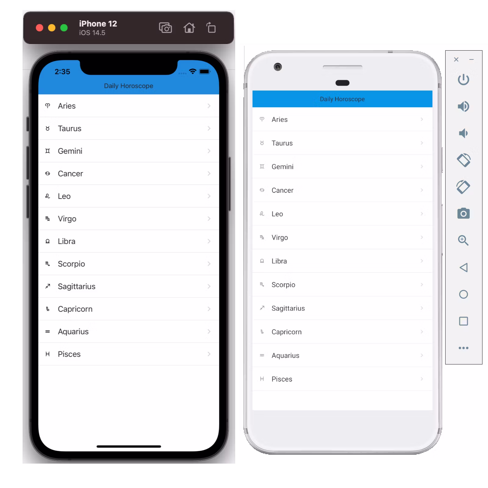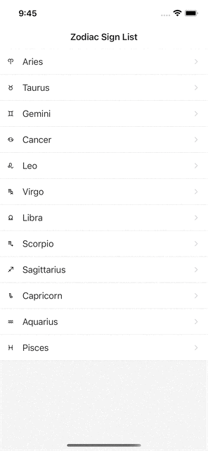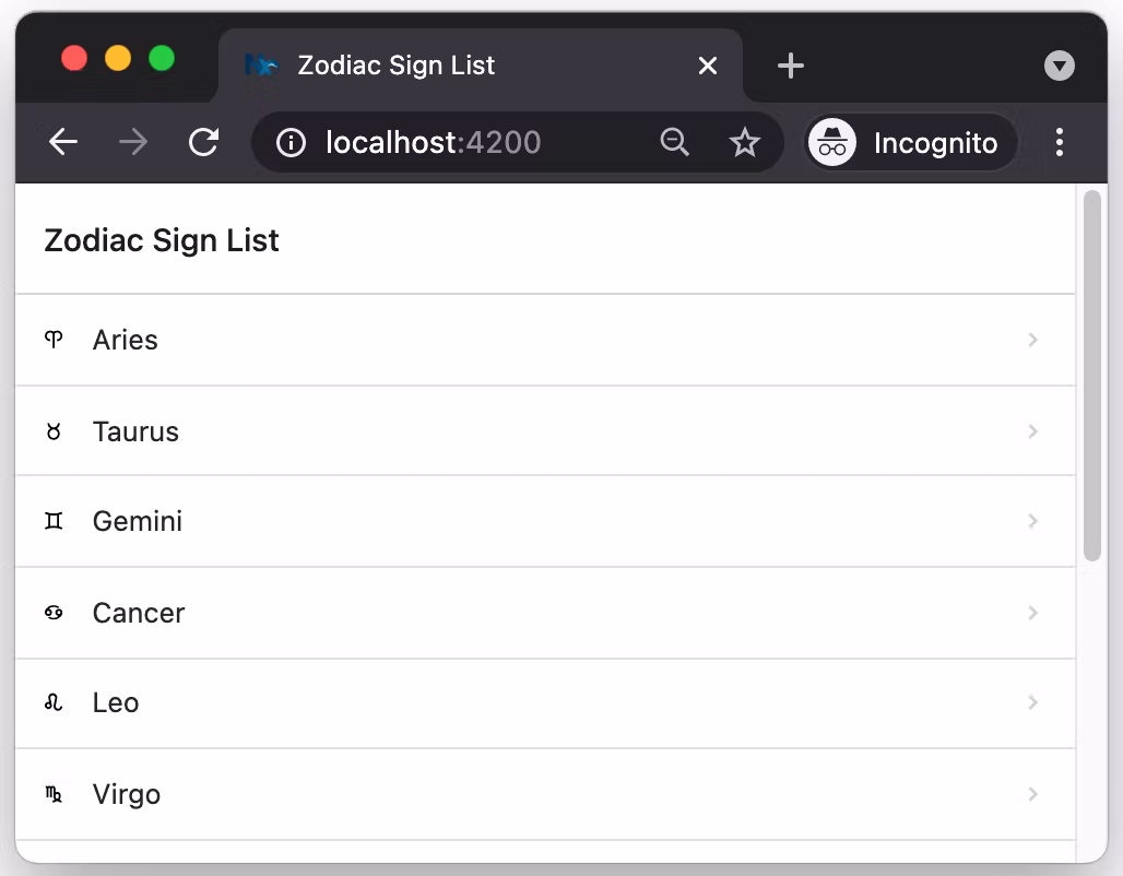 Now, you need to create the first page of your app: a page that shows a list of all the zodiac signs and allows users to choose from it.