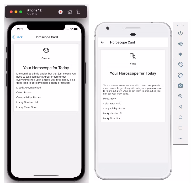 It goes through how to create a simple 2-page app that shows your daily horoscope based on your zodiac sign.